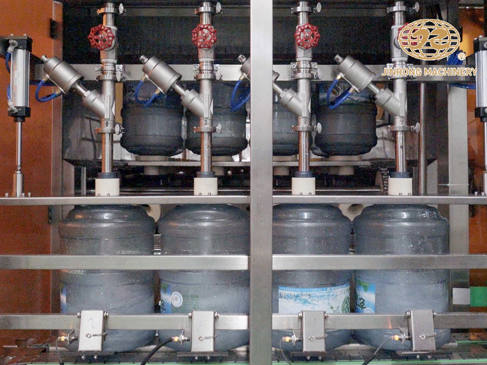 桶裝水灌裝線設備主要由清洗,灌裝,壓蓋三部分組成,主要應用于3加侖和5加侖飲用水的一體化生產(chǎn)。大桶水灌裝生產(chǎn)線由拔蓋機、內(nèi)外刷桶機、灌裝機、壓蓋機、套標機、貼標機、噴碼機、套袋機等組成。